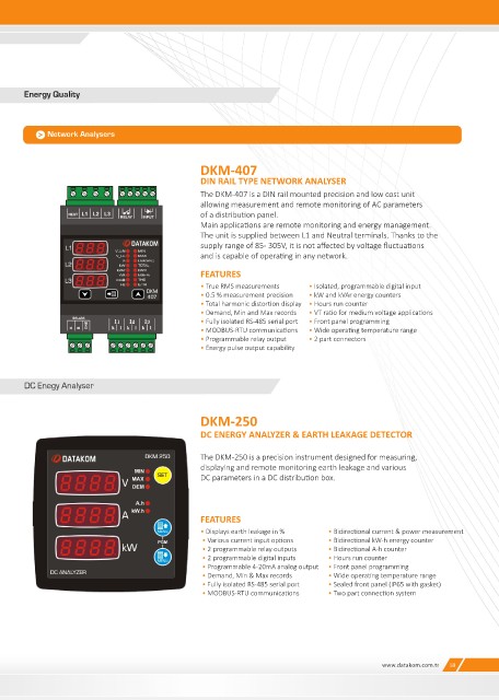 • 0.5 % measurement precision • kW and kVAr energy counters
