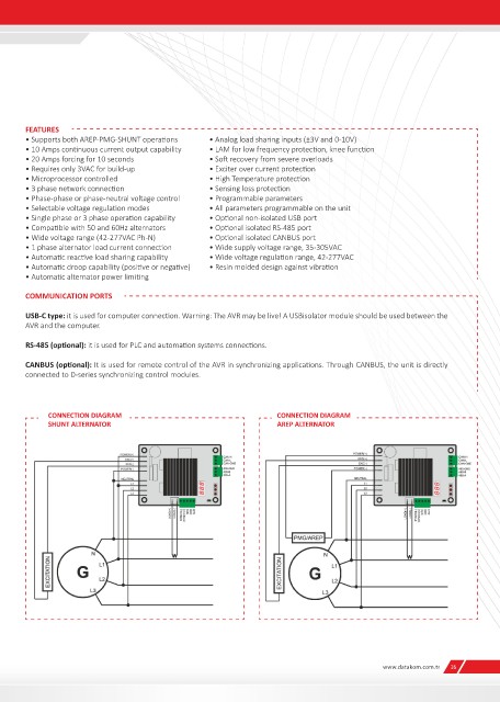 • Supports both AREP-PMG-SHUNT operations • Analog load sharing inputs (±3V and 0-10V)