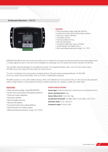 The unit is maintenance free and capable of making self-test. The earthquake sensing specifications of DSD-080