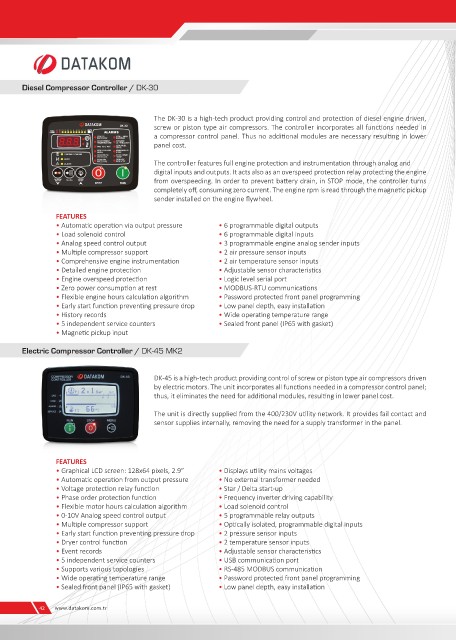The DK-30 is a high-tech product providing control and protection of diesel engine driven,