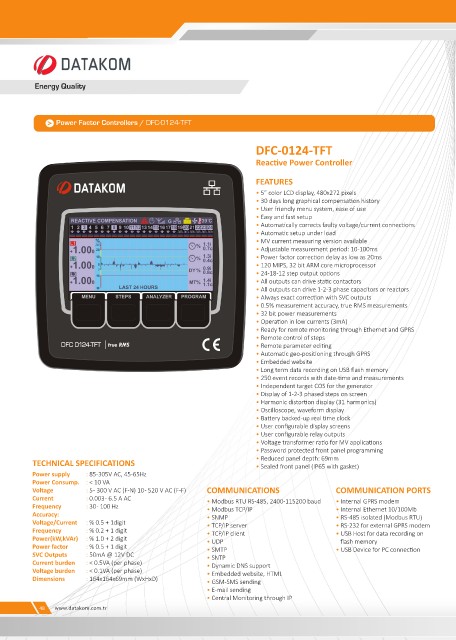 Power factor : % 0.5 + 1 digit • SMTP • USB Device for PC connection