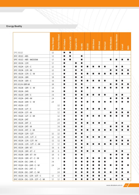 Relay Output Thyristor Output SVC Output Character LCD Graphic LCD RS-485 RS-232 USB Device USB Host Ethernet GPRS Modem Remote Monitor E-mail SMS