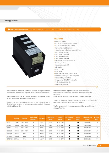 The Datakom SSC series are solid state switches for capacitor banks Static switches offer important advantages compared to